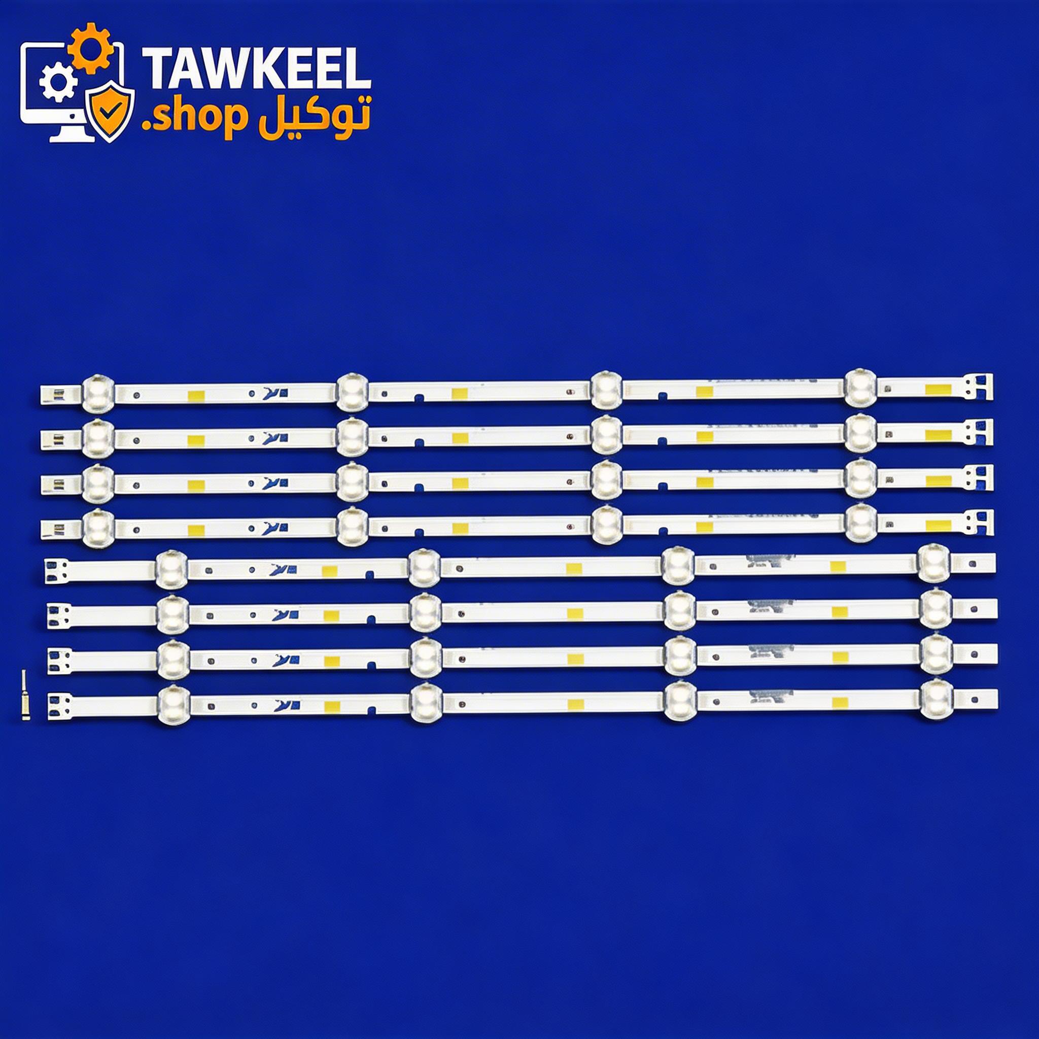 طقم مساطر إضاءة خلفية لشاشات إل جي 32 بوصة موديل LB (LG 32LB) الأصلي كوري، يأتي بـ 3 مساطر (2 نوع A و 1 نوع B) من الألمنيوم، جودة عالية مع عدسات مربعة أصلية مشتتة للإضاءة، 6 ليد لكل مسطرة، وبجهد 6 فولت