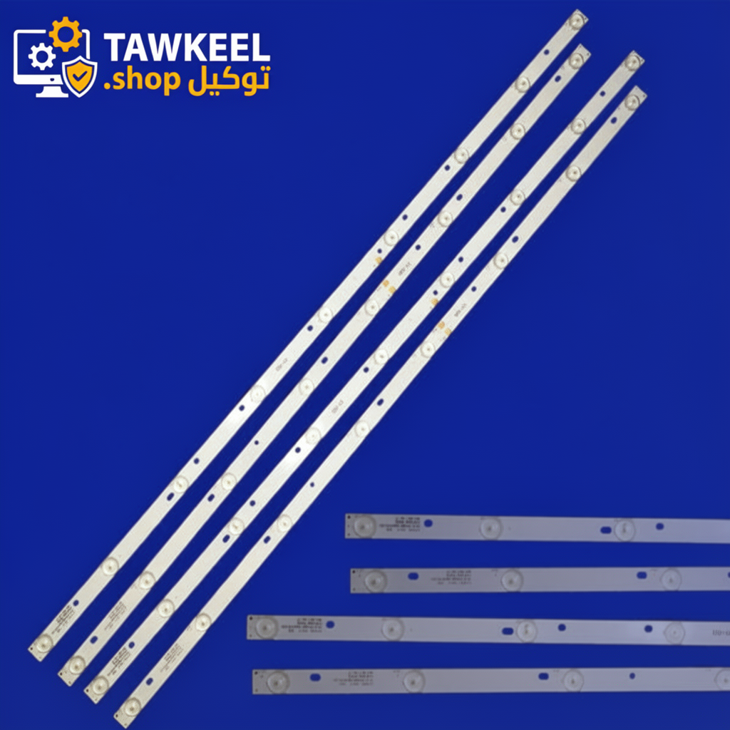 طقم مساطر إضاءة خلفية لشاشات إل جي 32 بوصة موديل LB (LG 32LB) الأصلي كوري، يأتي بـ 3 مساطر (2 نوع A و 1 نوع B) من الألمنيوم، جودة عالية مع عدسات مربعة أصلية مشتتة للإضاءة، 6 ليد لكل مسطرة، وبجهد 6 فولت