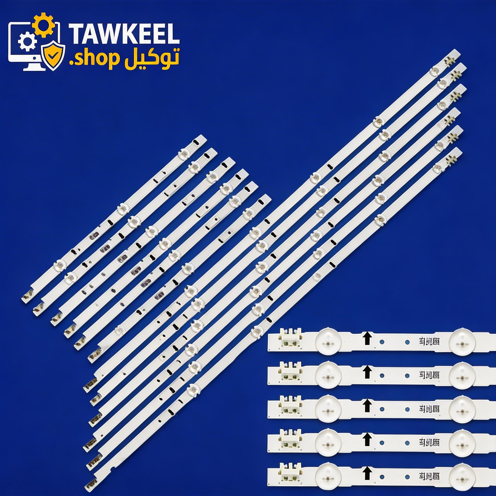 طقم مساطر إضاءة خلفية لشاشات إل جي 32 بوصة موديل LB (LG 32LB) الأصلي كوري، يأتي بـ 3 مساطر (2 نوع A و 1 نوع B) من الألمنيوم، جودة عالية مع عدسات مربعة أصلية مشتتة للإضاءة، 6 ليد لكل مسطرة، وبجهد 6 فولت